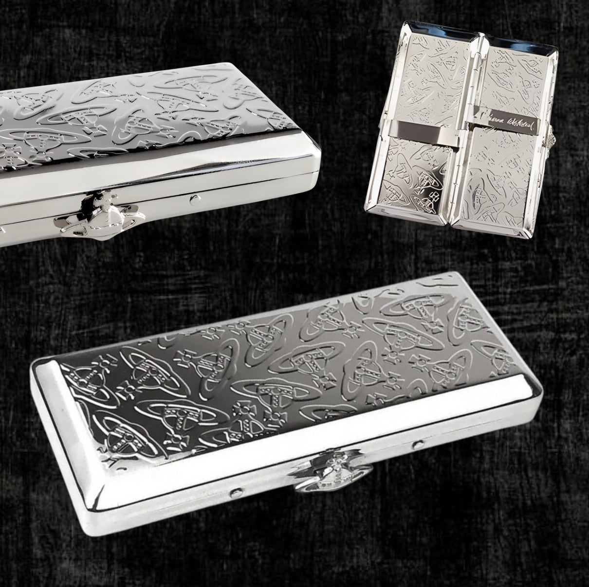 This Vivienne Westwood cigarette case is the perfect accessory. The sleek silver-tone finish is embossed throughout with Vivienne Westwood’s iconic Orb logo, giving it a bold yet refined look. Compact and functional, it’s perfect for carrying cigarettes, cards, or small essentials with style.