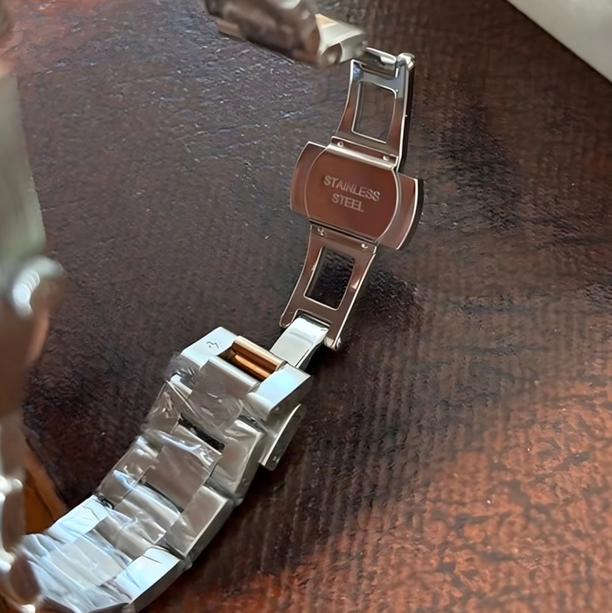 This Vivienne Westwood Fenchurch features the iconic Orb logo subtly integrated into the dial, it balances elegance with Westwood’s distinctive edge. The polished stainless-steel case and bracelet offer a refined finish, while the precise quartz movement ensures reliable timekeeping.