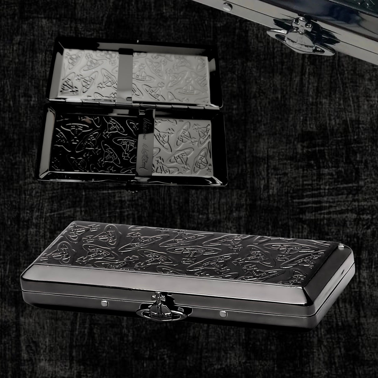 This Vivienne Westwood cigarette case is the perfect accessory. The sleek silver-tone finish is embossed throughout with Vivienne Westwood’s iconic Orb logo, giving it a bold yet refined look. Compact and functional, it’s perfect for carrying cigarettes, cards, or small essentials with style.
