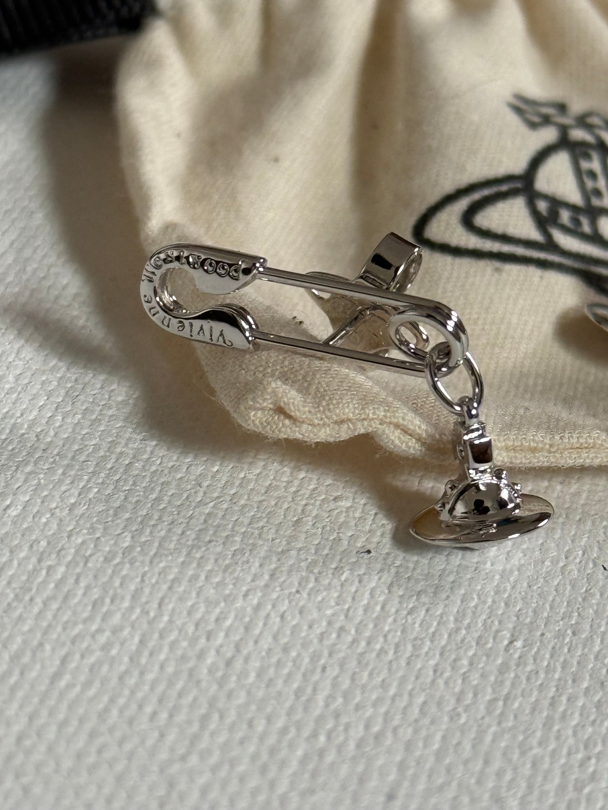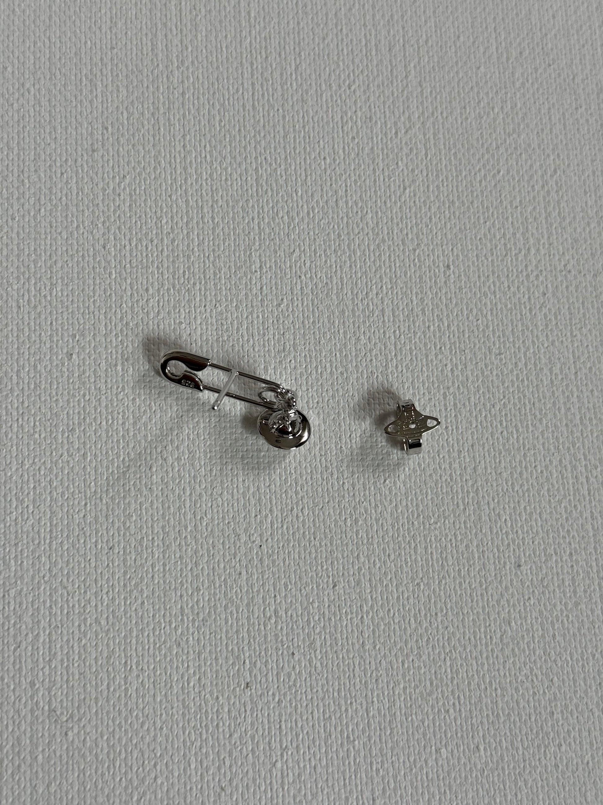 VW Safety Pin 925 Silver Orb Earrings Pre-owned
