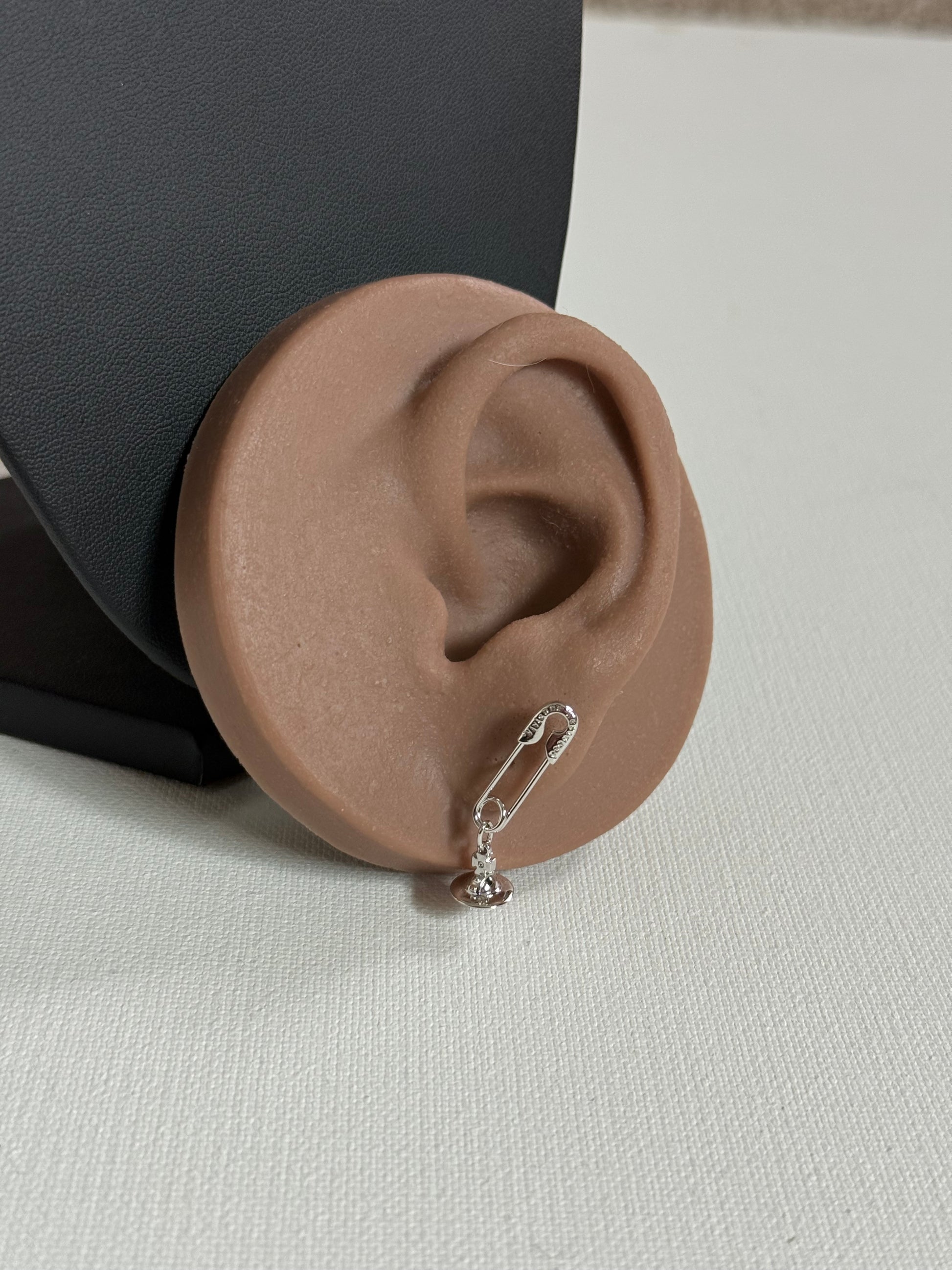 - Depth (width from end to end of safety pin) 2.1cm, height 0.6cm, orb diameter 0.83cm